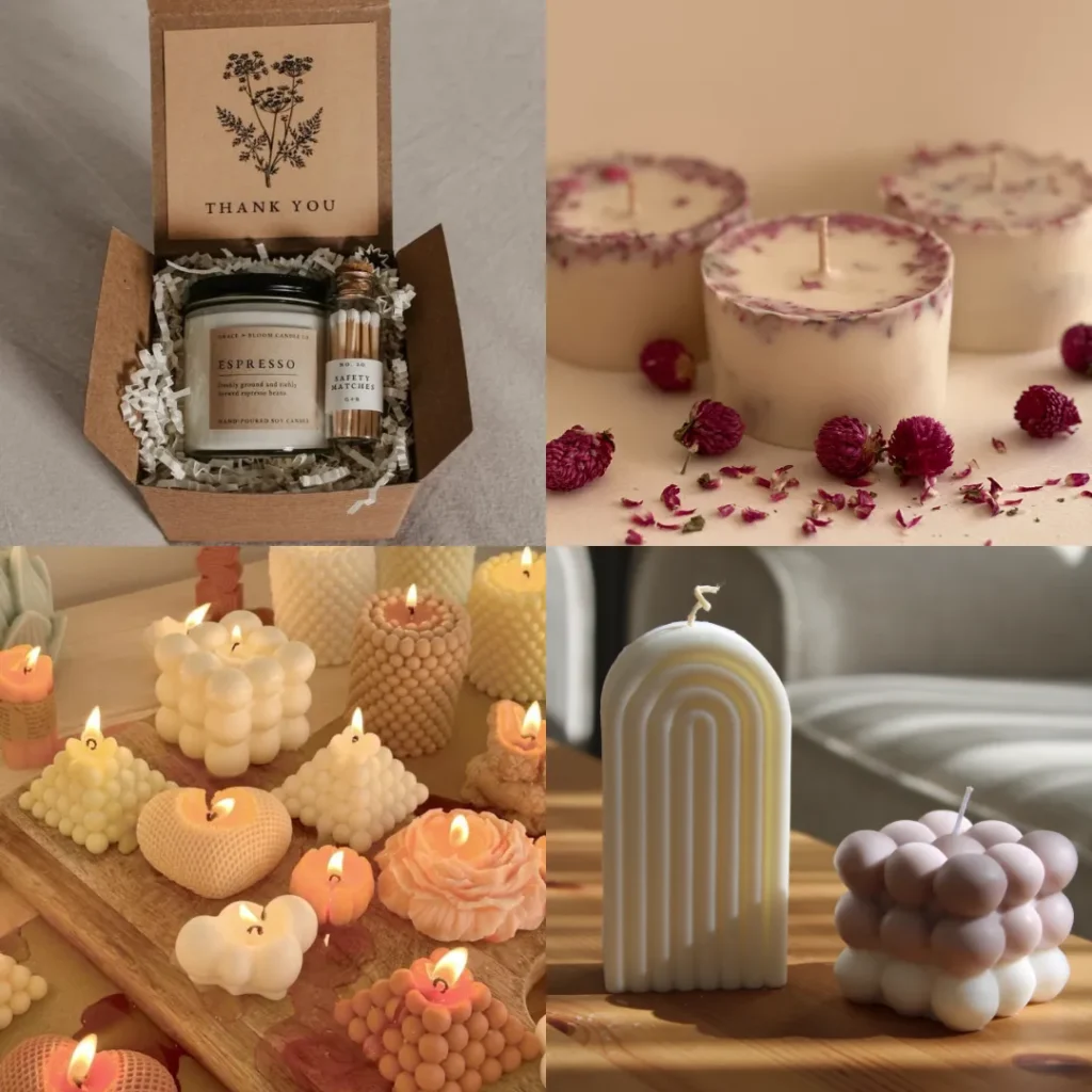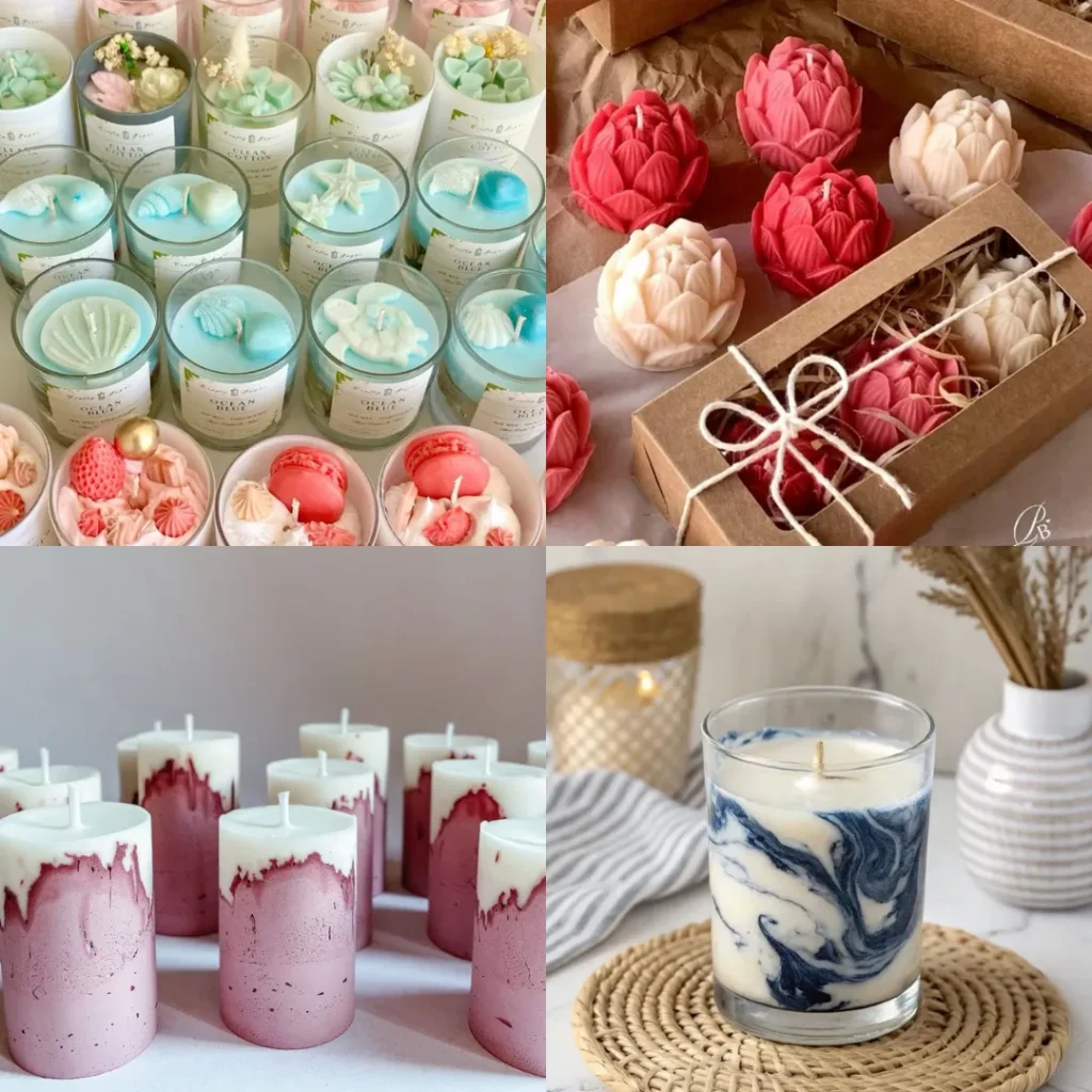 ✅ Vai aprender, passo a passo, desde o mais básico até ao mais avançado, como fazer diferentes tipos de velas artesanais bonitas, tais como: